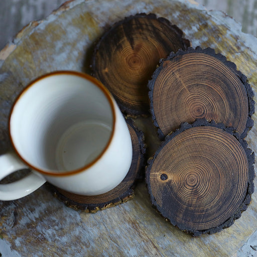 A modern spin on a true classic! Our hand-crafted 4-pack of barkless natural tree wood coasters are artisan made out of solid hardwood and are perf...