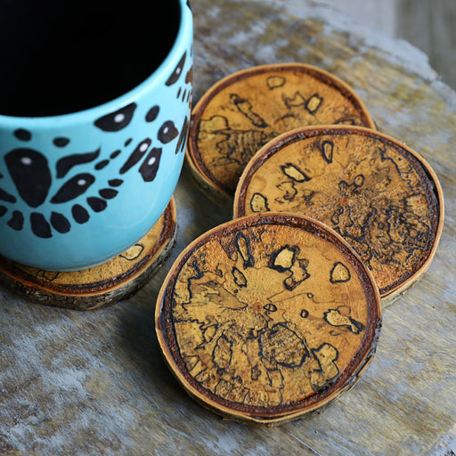 Rare Birch Tree Wood Coasters with Bark (4-Pack)